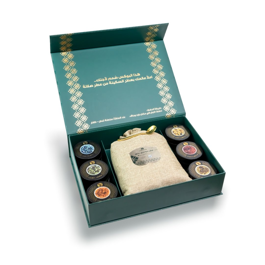 استمتع بعبق الفخامة والهدوء مع باقة اللبان السلطاني المعطر، المختارة بعناية من أجود أنواع اللبان العماني الطبيعي من قلب ظفار، موطن اللبان الأصيل، في 6 روائح عطرية متنوعة.