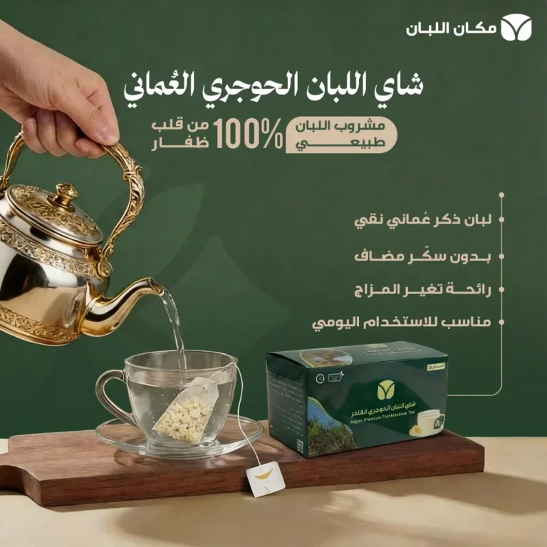 شاي اللبان الحوجري العُماني هو مشروب طبيعي 100٪ من اللبان الذكر العُماني يُحضَّر بالنقع أو الغلي، ليمنحك كوبًا دافئًا يحمل روح ظفار في روتين بسيط قبل النوم أو مع بداية اليوم.