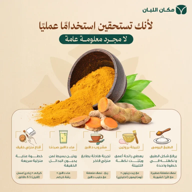 أنتِ لا تحتاجين عشرات الوصفات… تحتاجين 5 استخدامات واضحة تساعدك تستفيدين من الكركم بشكل يومي.